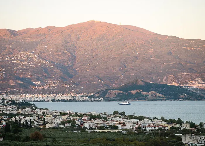 Guests can enjoy a seaside sea view from a terrace at Aetheria Volos villa, 6 km from the Rooftile and Brickworks Museum N. & S. Tsalapatas. The villa offers guests a relaxing experience with a hot tub.